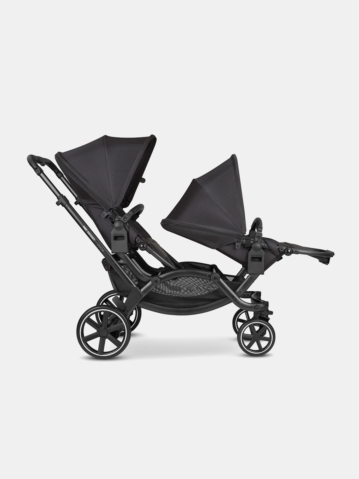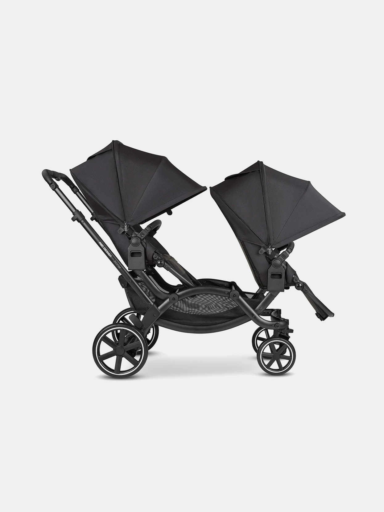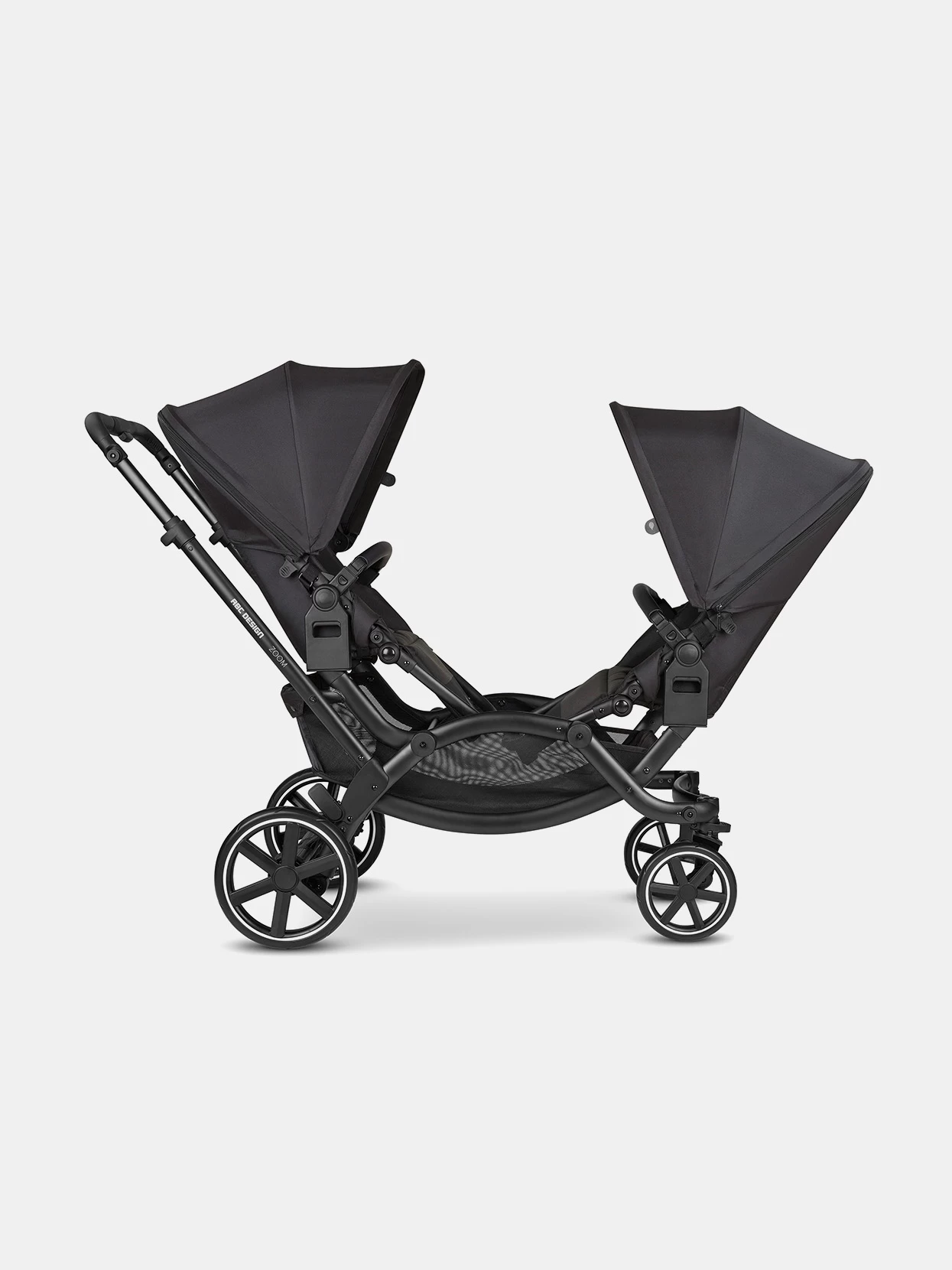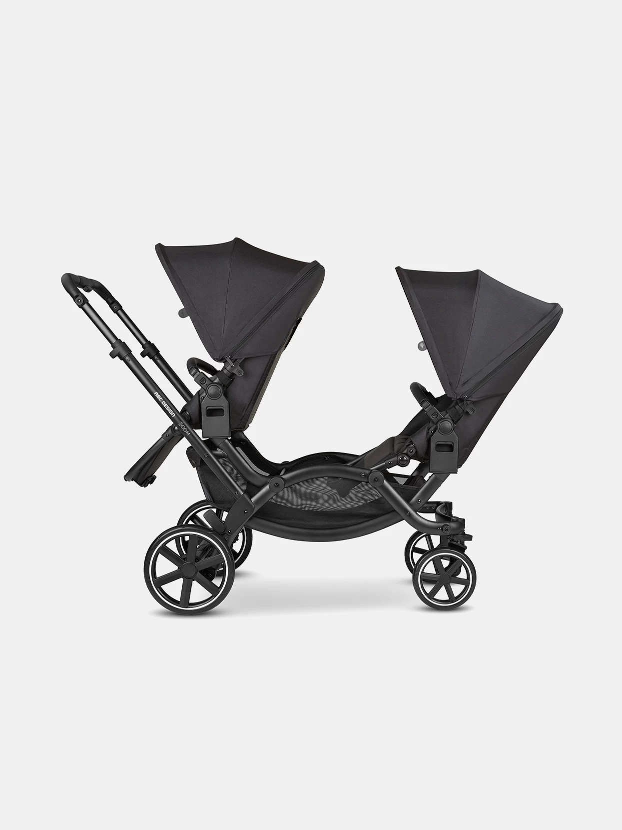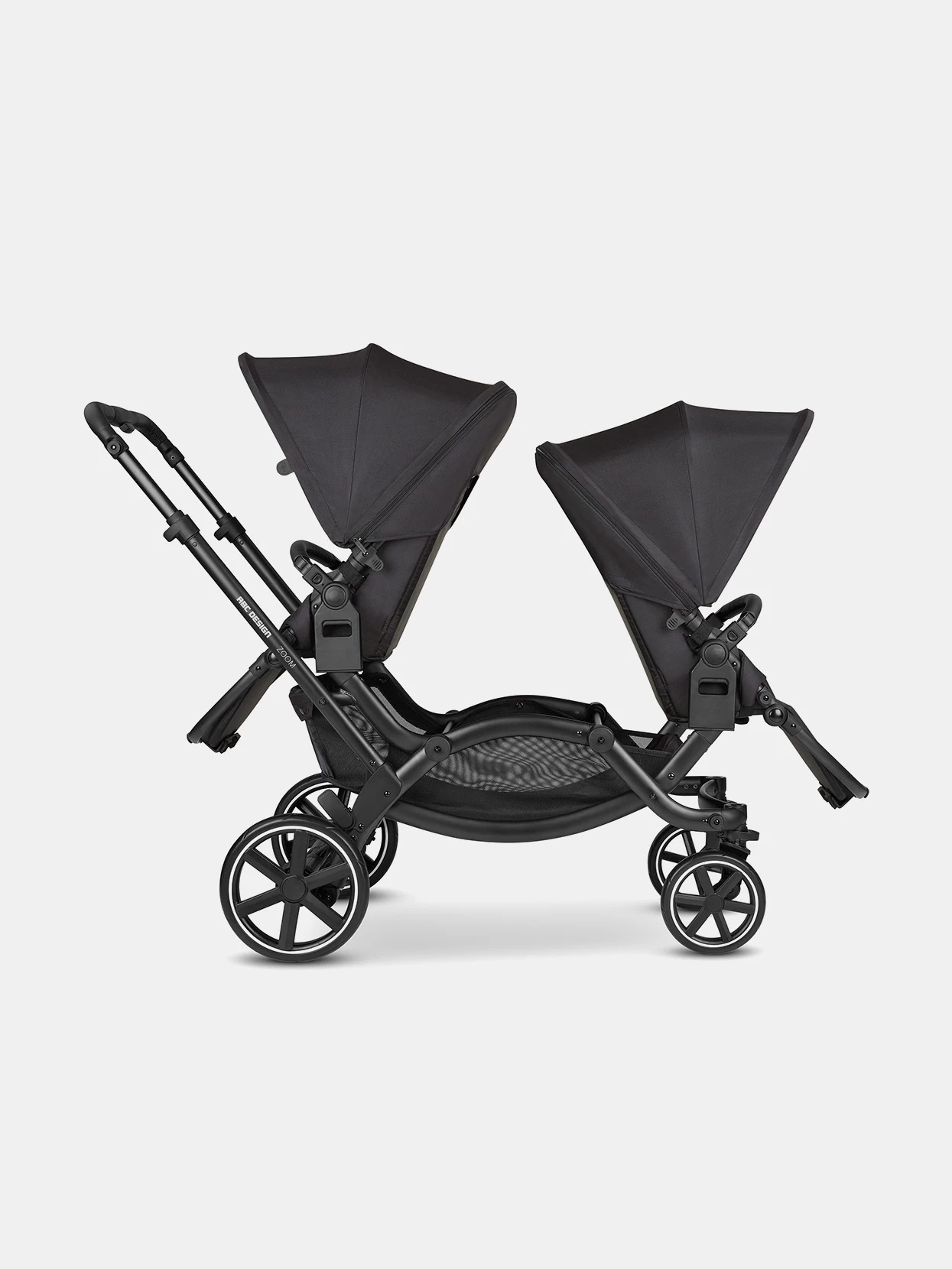 Ein mega-großzügiger Einkaufskorb und abwaschbare Stoffe runden Komfort und Handling Ihres Zwillingswagens im Alltag ab.