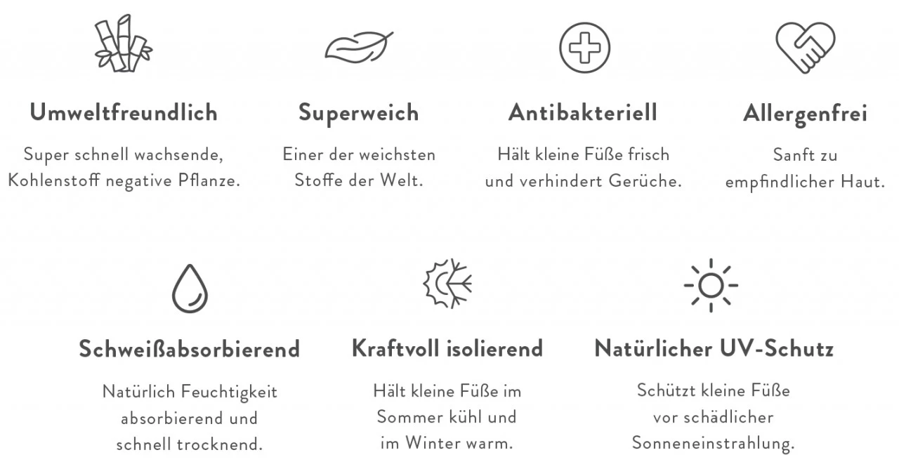 - das Obermaterial und das weiche Jersey-Innenfutter werden aus atmungsaktiver Bambusviskose hergestellt