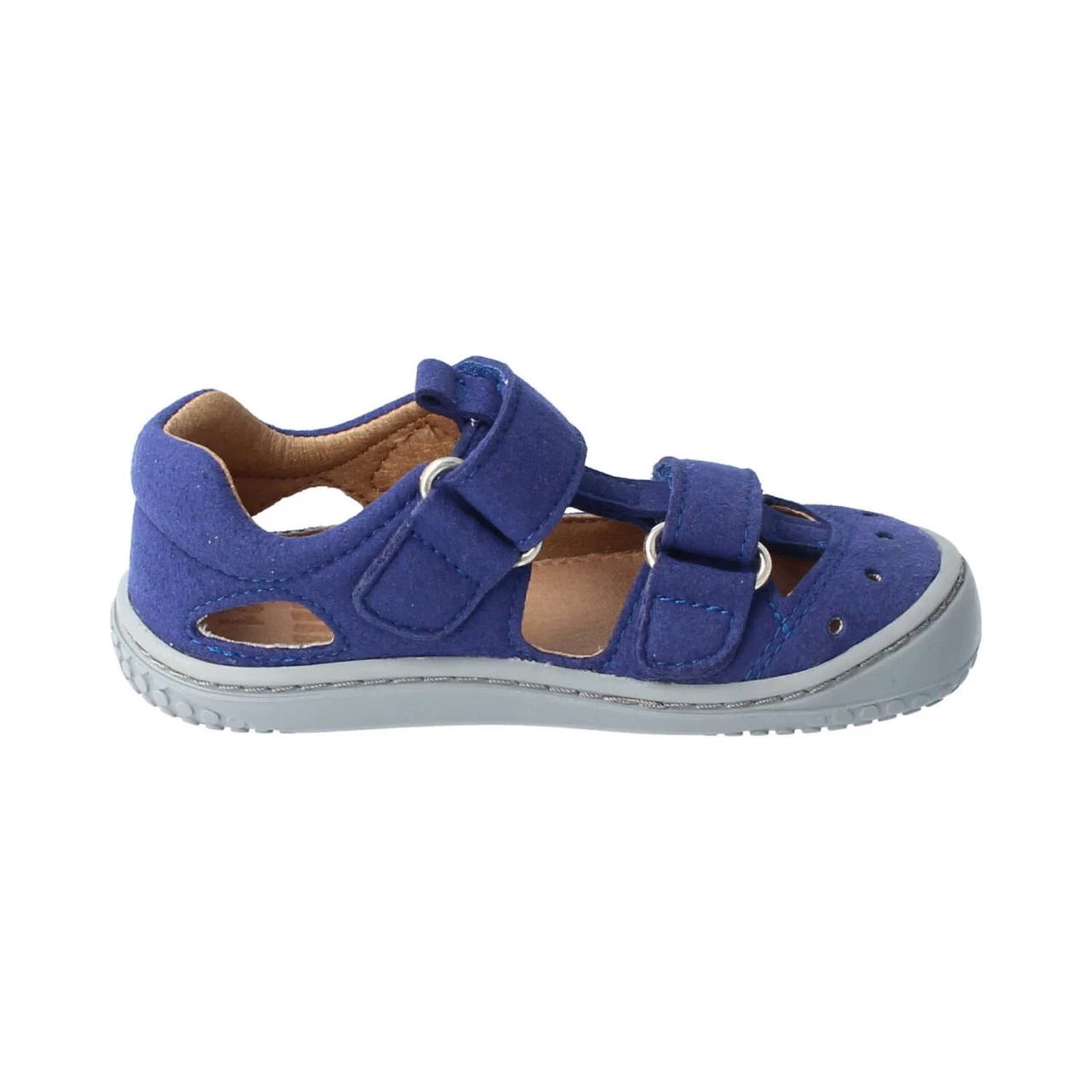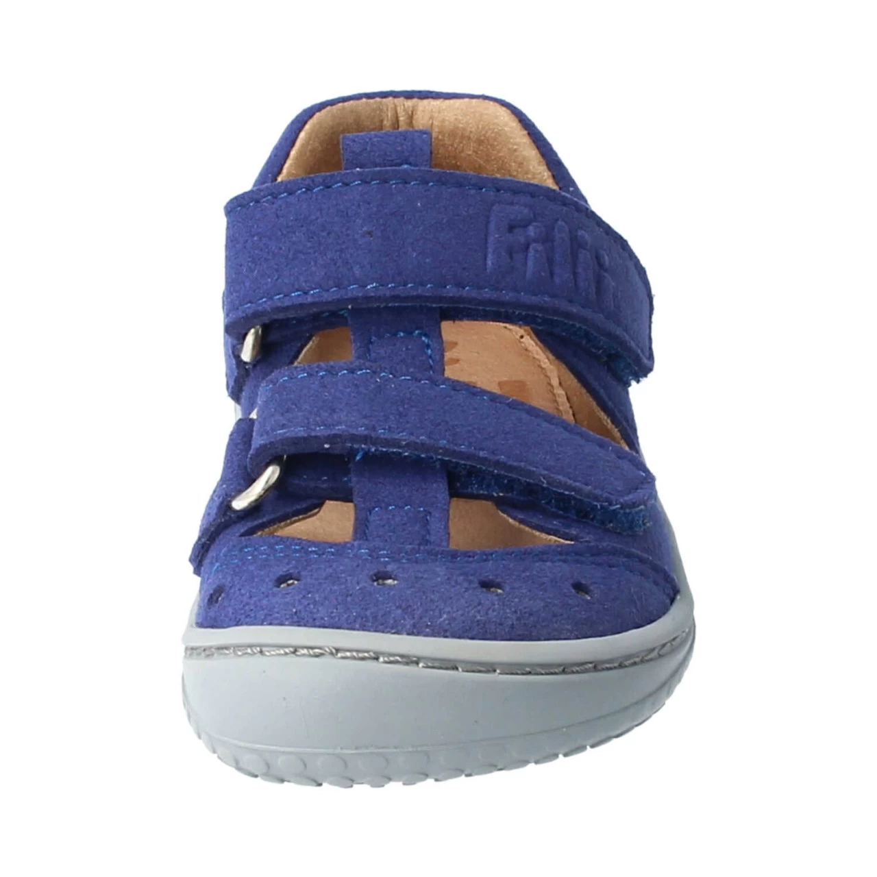 Die wunderbar weichen Sandalen KAIMAN sind aus der neuen Kollektion von filii barefoot. Die bequemen Barfuß Kindersandalen werden aus blauem Micro-Velour hergestellt . Durch den Klettverschluß kann der bequeme Kinderschuh ganz schnell an- und ausgezogen werden. Die flexible Sohle ist vorne im Zehenbereich etwas nach oben gezogen . Das verschafft nicht nur ein wenig mehr Zehenfreiraum , sondern schützt die Zehen und auch das Leder an der Zehenkappe. Die bequem geschnittene Paßform im Vorfußbereich bietet den Zehen viel Platz zum Abrollen und viel Bewegungsfreiheit.
