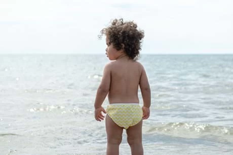 Durch die seitlich angebrachten Druckknöpfe lässt sich die Schwimmwindeln kinderleicht an- und ausziehen.