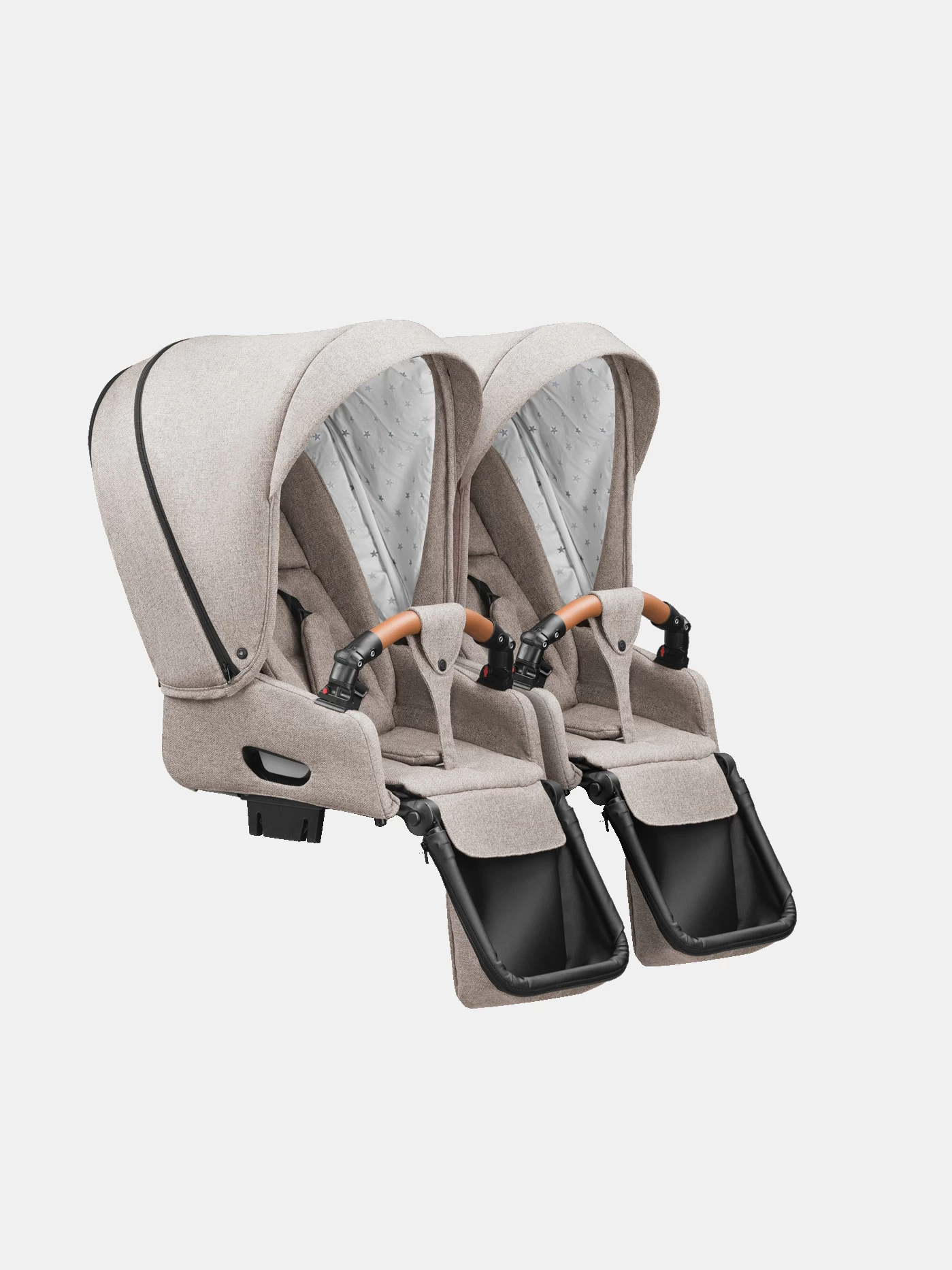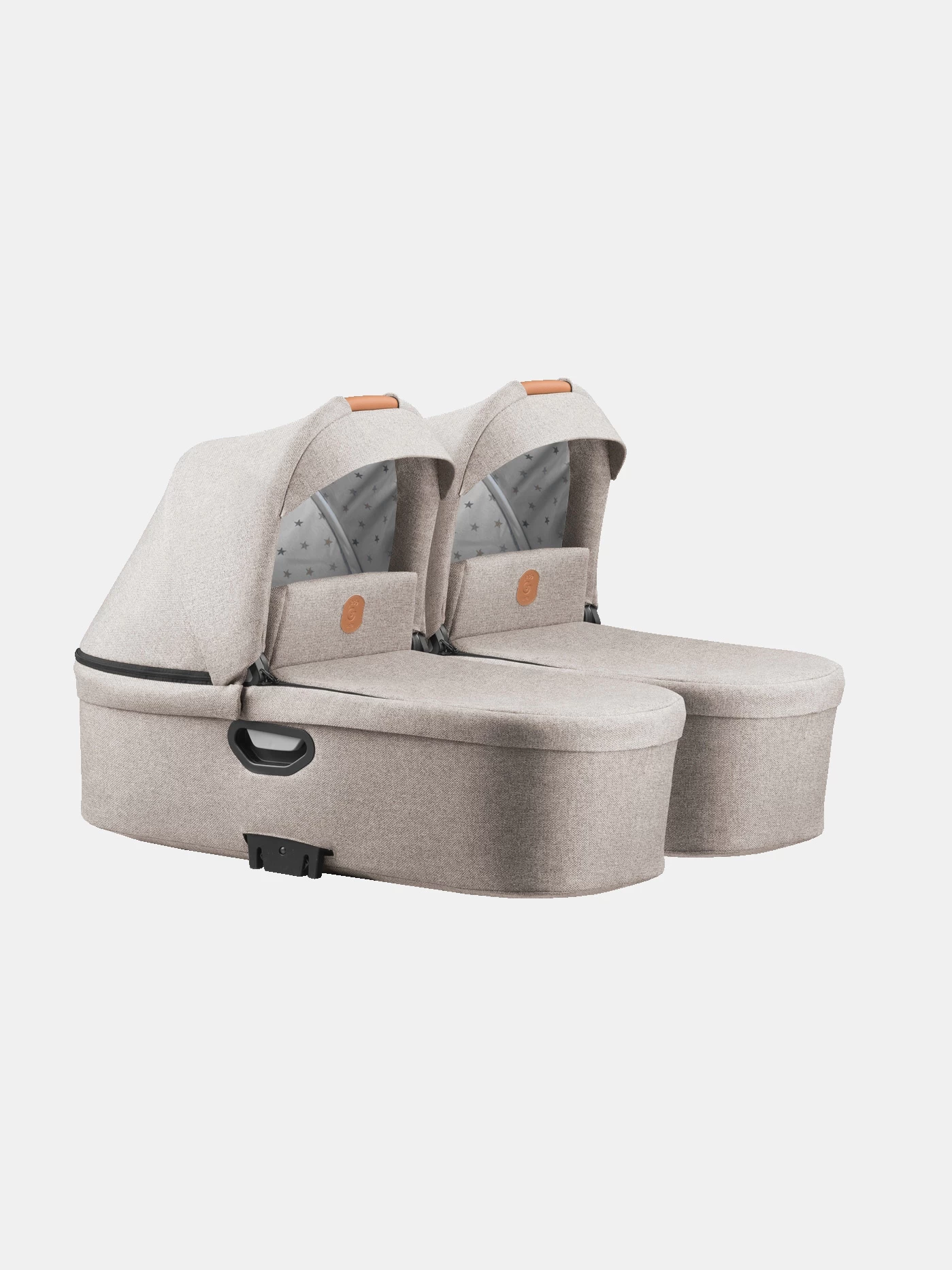 Die zum Set gehörenden Babywannen zeichnen sich durch Ihre überdurchschnittliche Geräumigkeit und eine antibakterielle, weiche Schaummatratze mit Lüftungsfunktion und abnehmbarem Bezug aus. Die Beindecke und das große, ausziehbare Sonnenverdeck schützen Ihre beiden Neugeborenen vor Wind und Wetter. Angenehm weich gebettet und sanft geschaukelt, wagen Sie mit ihren beiden Kleinsten eine erste Fahrt.