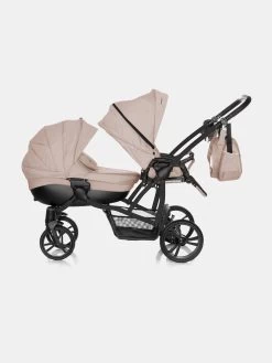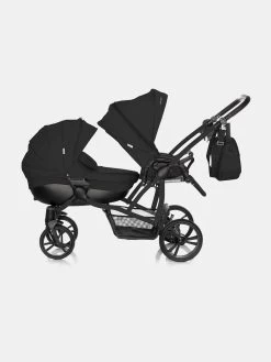 Bebetto 42 Dunkelgrau Schwarz Zwillingskinderwagen – Set 3in1 Inkl. Bobostello Babyschalen