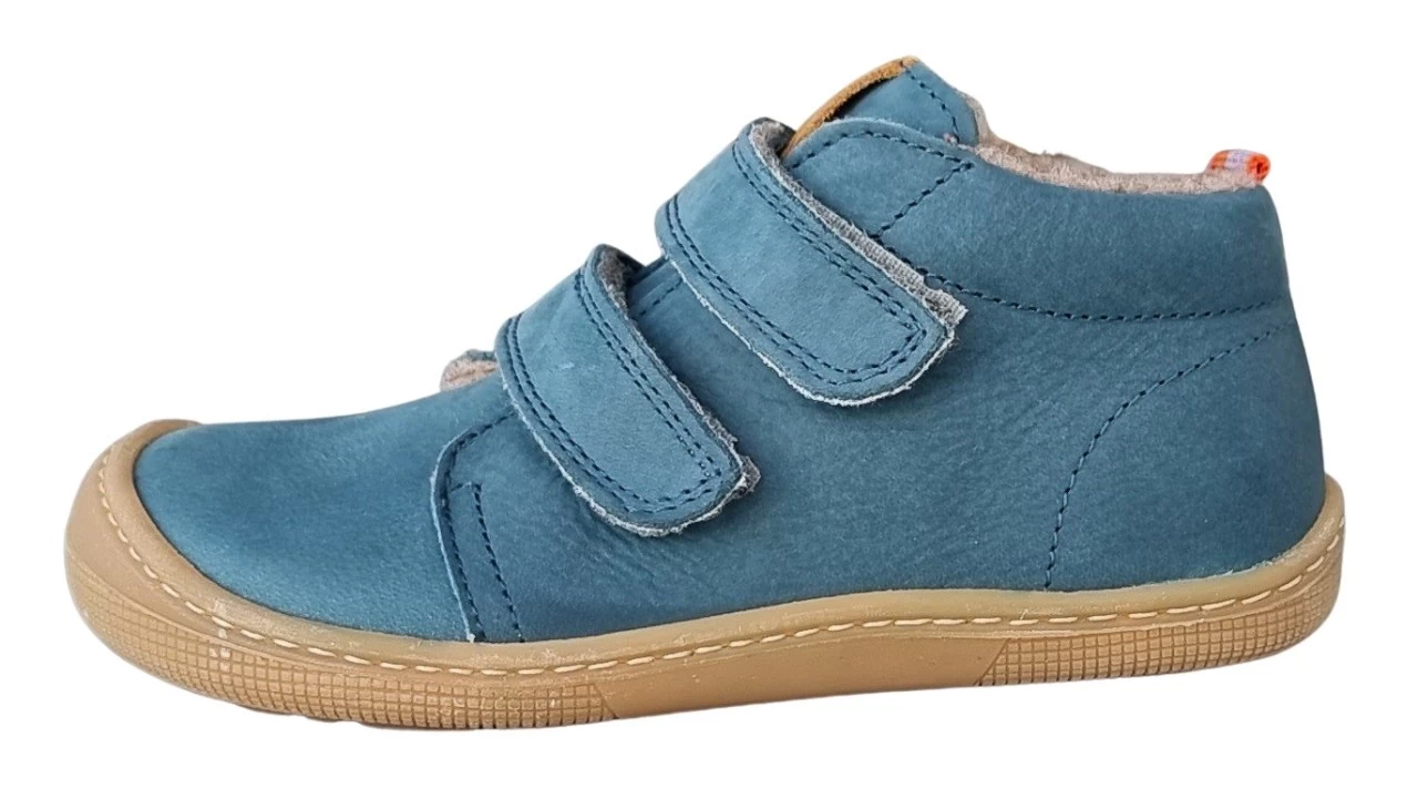 Die bequemen KOEL Kinder Barfußschuhe DON HYDRO sind mit einem wärmenden Wollfutter ausgestattet. Das wasserabweisende Obermaterial der Barfußschuhe ist hydrophobiertes Bioleder in dunkelblau. Durch das weiche Innenfutter aus Wolle bleiben Füße in der kühleren Übergangszeit schön warm . Der zweifache Klettriegel ermöglicht eine individuelle Anpassung an den Fußrücken. Die Minimalsohle ist extra weich und flexibel. Das sorgt für ein großartiges Laufgefühl und Bewegungsfreiheit für den Fuß. Die Paßform ist mittelbreit.
