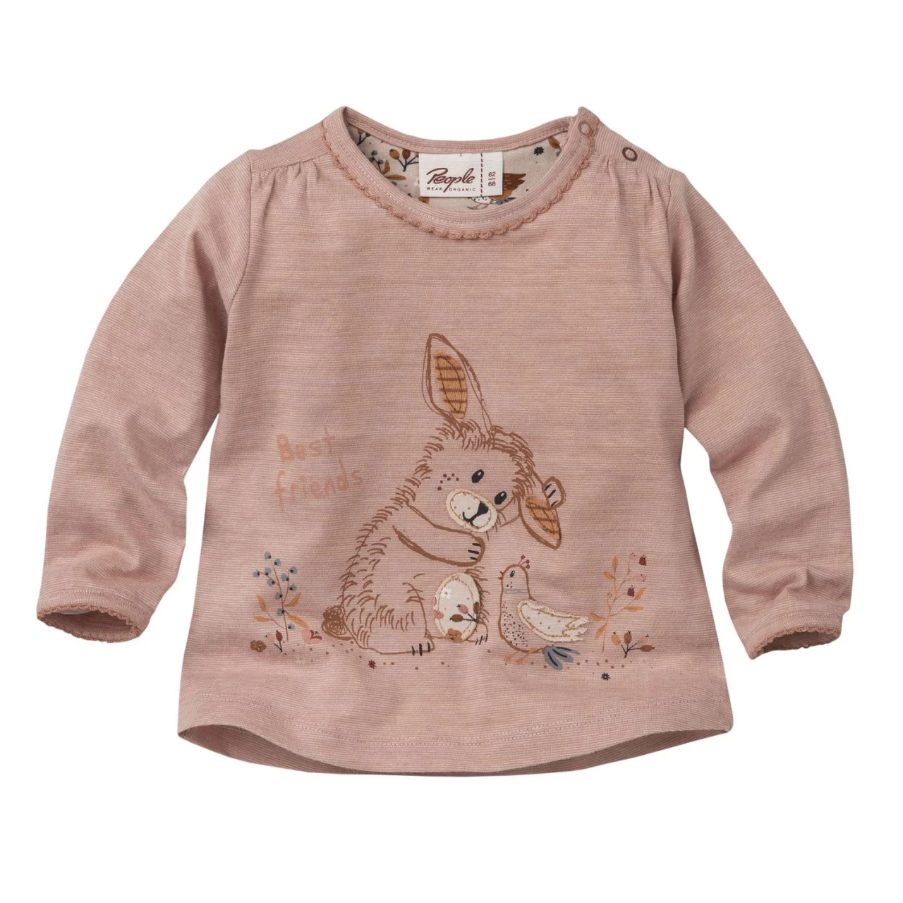 People Wear Organic – Baby Langarmshirt rosenholz mélange mit Applikation „Häschen“ aus Bio-Baumwolle