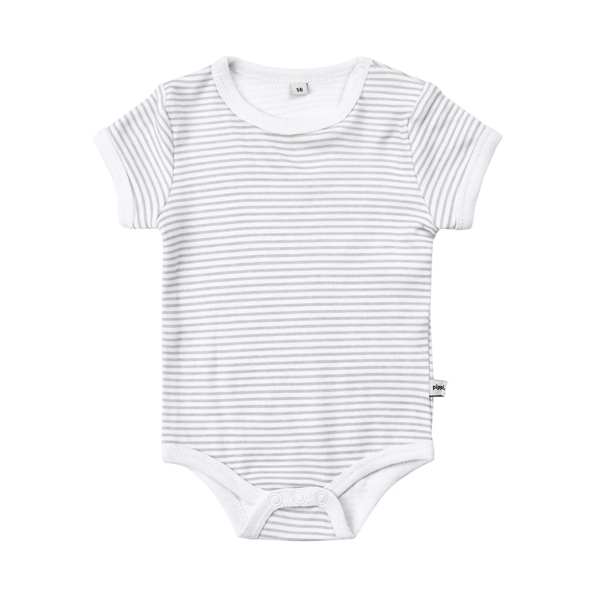 Pippi Baby Kurzarm Body grau/weiß 4er Pack mit modischem Druck